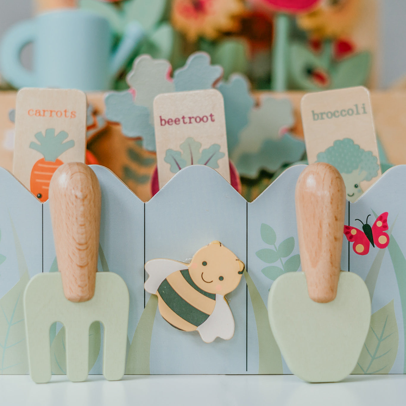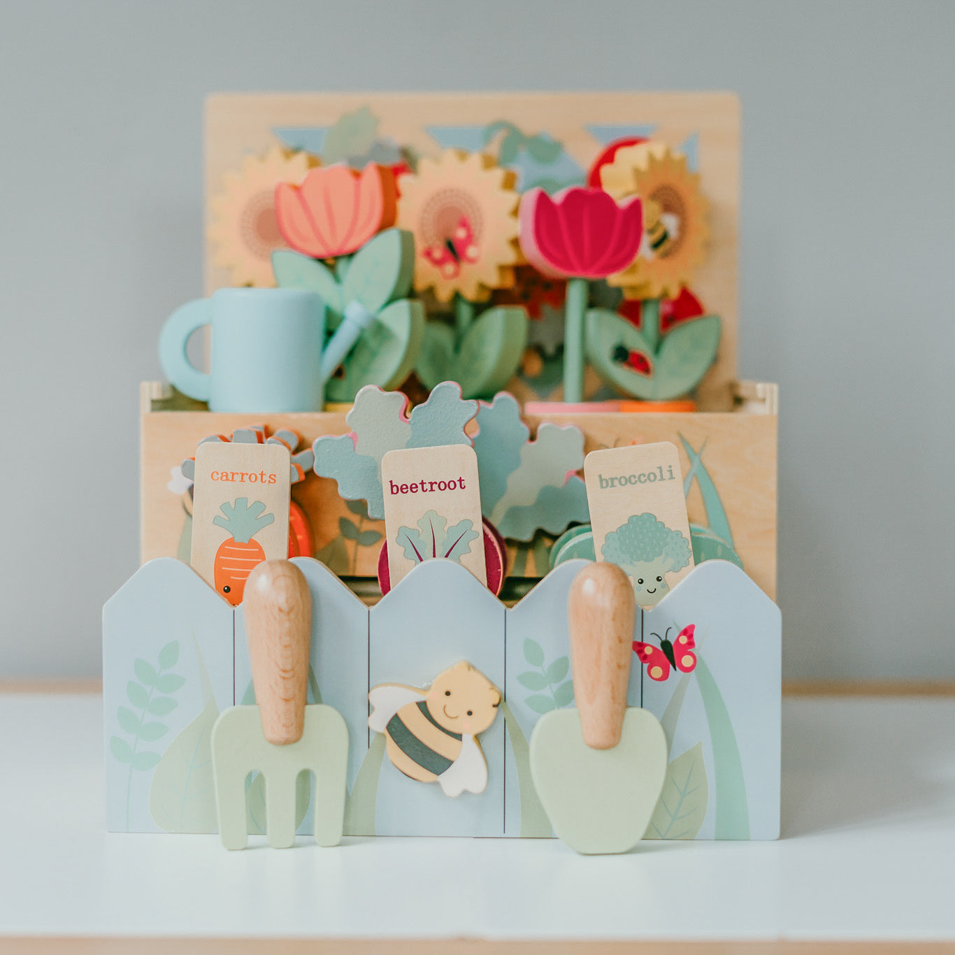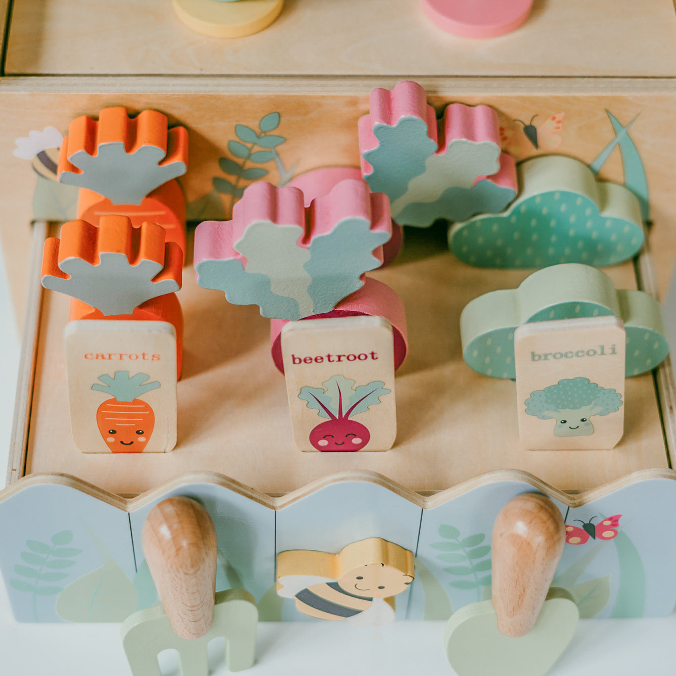 Imagine the pure delight on their faces as they slide open the lid, revealing a trellis overflowing with magnetic strawberries and tomatoes. And that's not all! A flower bed awaits, ready to be filled with vibrant tulips and sunflowers. The real magic happens when they pull open the bottom drawer, exposing a vegetable patch brimming with fresh broccoli, carrots, and beetroot.