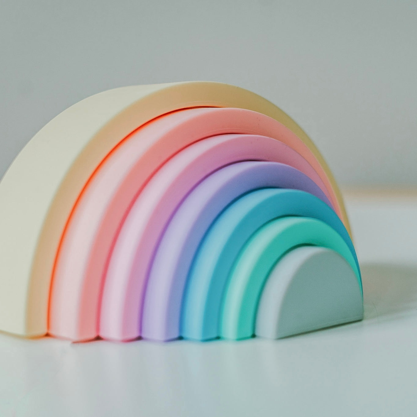 • A silicone rainbow for building, balancing and stacking